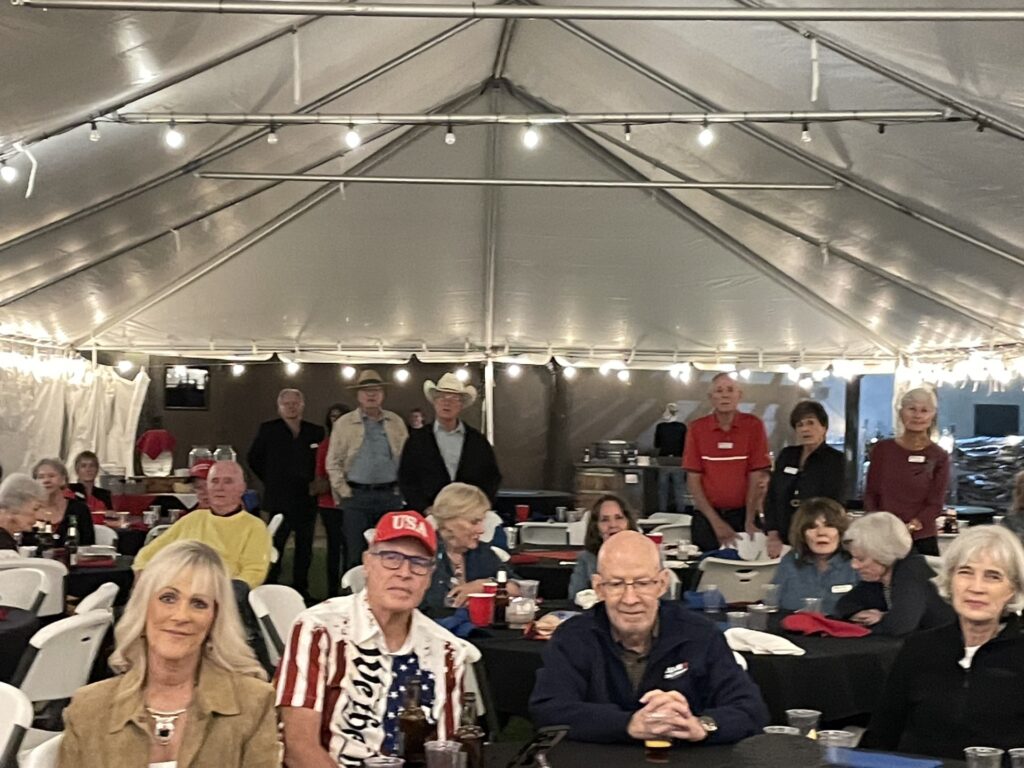 A large group of Republicans gathered on Friday evening, October 17, at the Longhorn Bar & Grill in Amado to enjoy camaraderie, music, politics, and fun. President Pat Colburn welcomed everyone and introduced the evening’s special guests: State Representatives Gail Griffin and Lupe Diaz, State Senator David Gowan, and Sahuarita Mayor Tom Murphy. The crowd was entertained by singer-songwriter Austin Hoffman, who performed a variety of music. Town Councilwoman Diane Priolo, who also serves as the Republican Club’s Program Chair, was in attendance as well. The legislators, all seeking reelection in 2026, mingled with attendees, shared updates on state politics, and engaged in lively conversation throughout the event. The Longhorn staff prepared and served a BBQ meal, including barbequed chicken and ribs, baked beans, cole slaw, and desert.